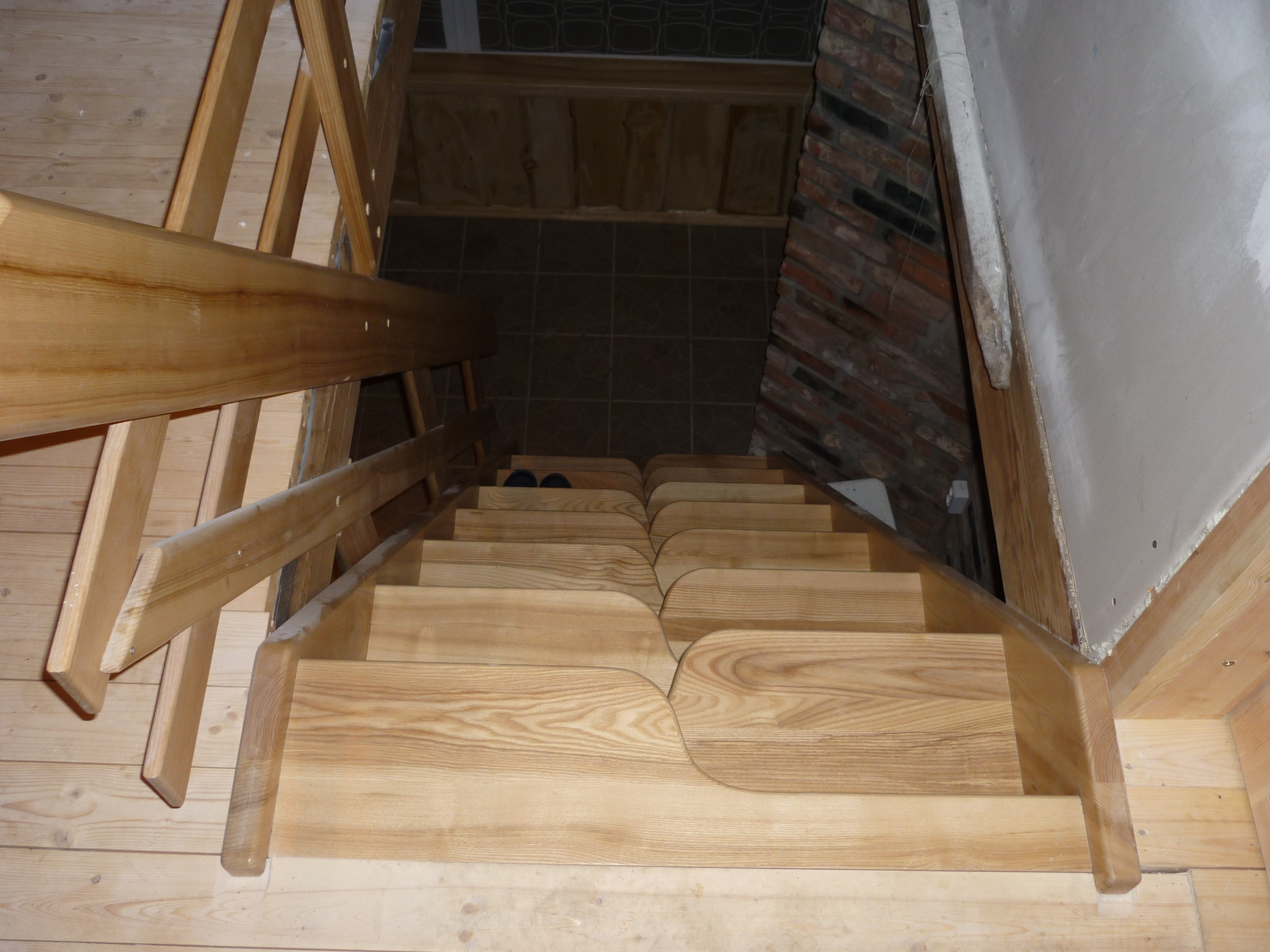 Laiptai "Lokio pėda". Naudojami kai mažai vietos ir netelpa pilnos pakopos laiptai.