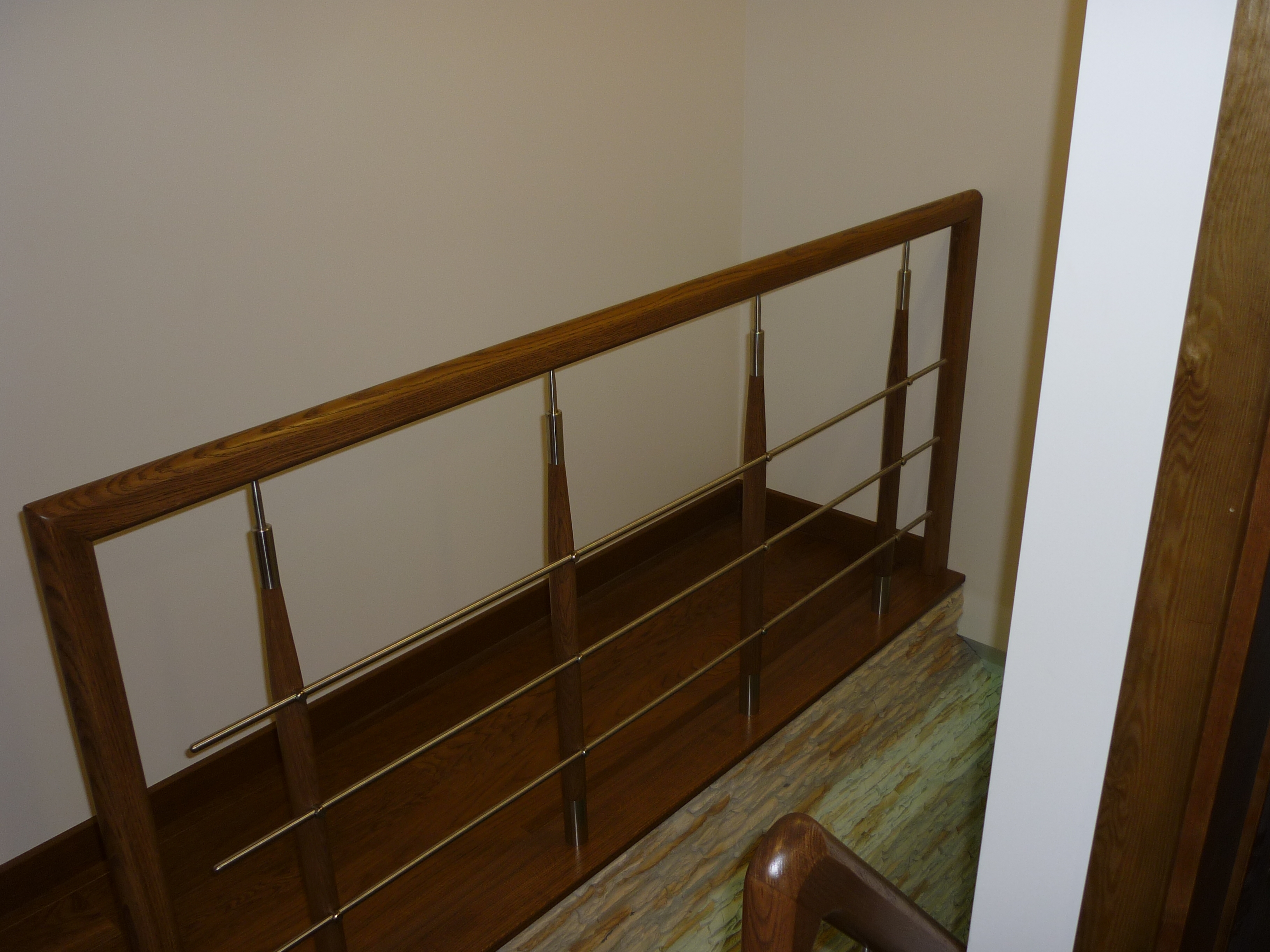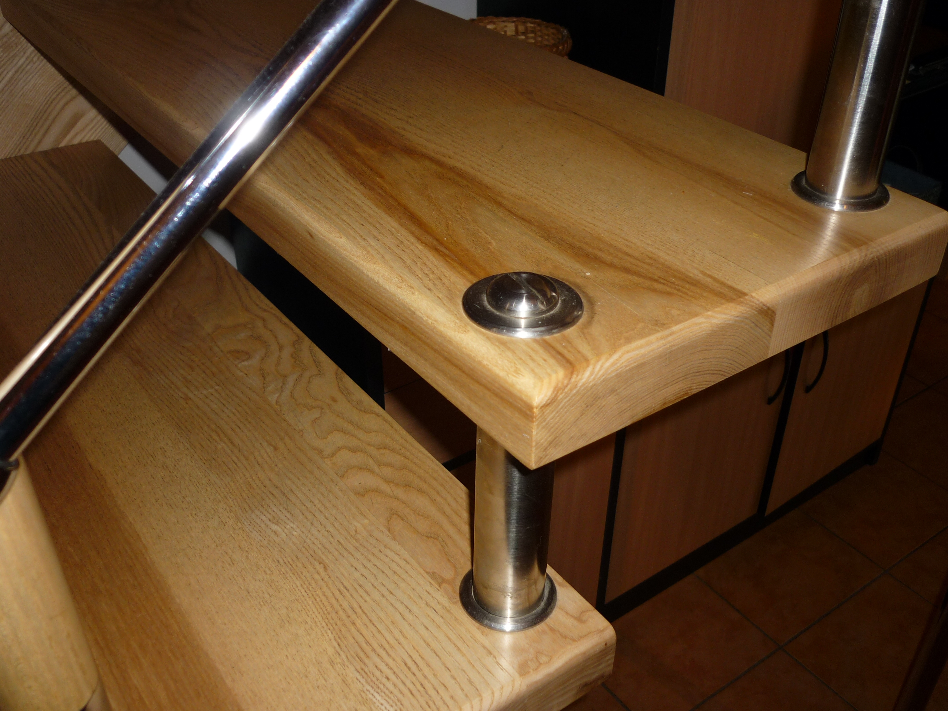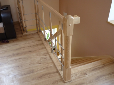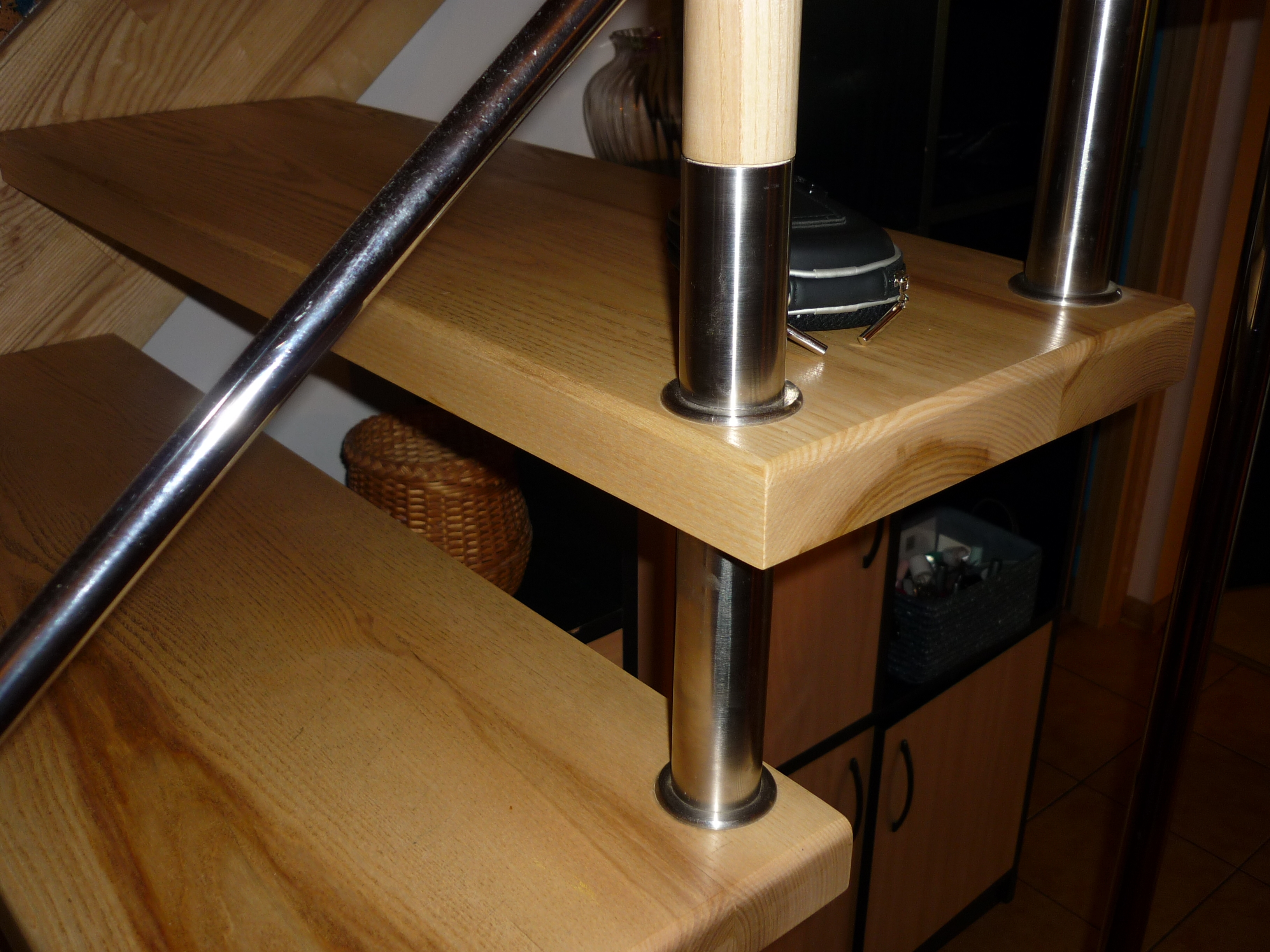 Uosiniai laiptai su nerūdijančio plieno elementais.